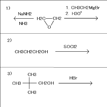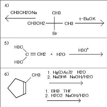 2.以下の反応の主生成物を記せ。不斎中心が存在する場合には。その立体構造が区別できるように、