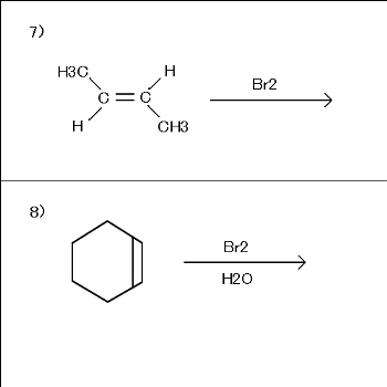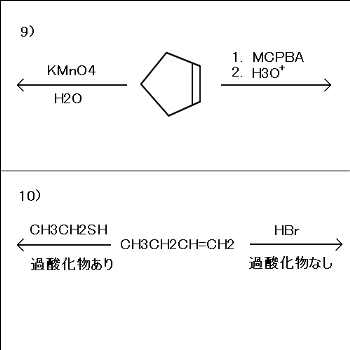 5.次の反応の主生成物を書け。生成物がラセミ体の場合は(ラセミ)、メソ体の場